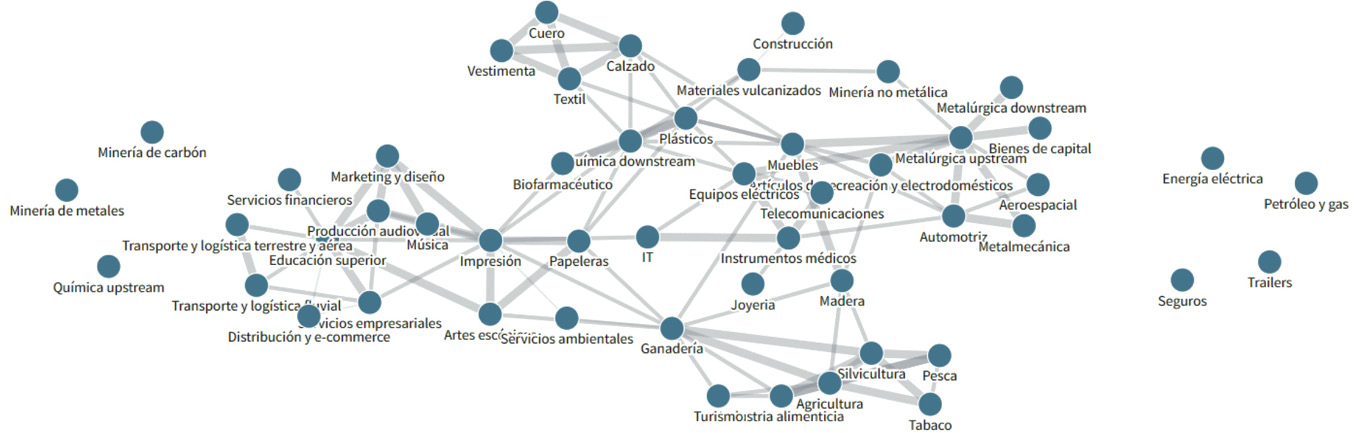 La diversificación de la matriz productiva puede facilitar el acceso a nuevos mercados internacionales (Palacios-Molina, 2016). De allí que resulte crucial comprender tanto la composición sectorial como el entramado de relaciones que existen entre e intra sectores, proceso en el cual tomó especial importancia el Centro en la definición del mapeo de actores y en los intercambios que desde él se gestionaron.